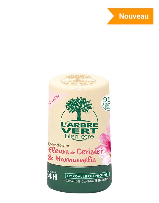 Aux extraits de fleurs de cerisier, aux bienfaits protecteurs et d'Hamamélis, aux bienfaits apaisants.