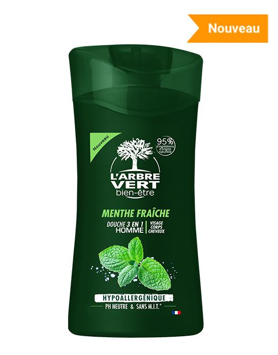 La douche 3 en 1 pour hommes L’ARBRE VERT bien-être est parfaitement adaptée pour se laver en un seul geste, des cheveux aux pieds en passant par le visage.