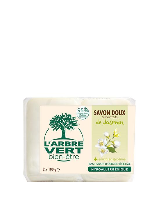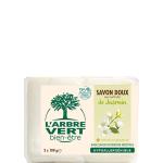 Le savon solide aux extraits naturels de jasmin L’Arbre Vert bien-être est hypoallergénique et écologique.