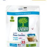 La lessive peaux sensibles L’Arbre Vert est sans enzymes, sans colorants et sans MIT*.